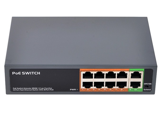 IEEE802.3af/at 8port 100Mbps + 2 Uplink with 250 meters extender function poe switch